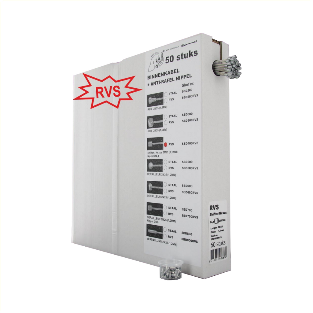 Slurf binnenkabel RVS, derailleur, 50 stuks in doos, 2m25 incl anti rafelnippel (versnelling) oa voor Nexus