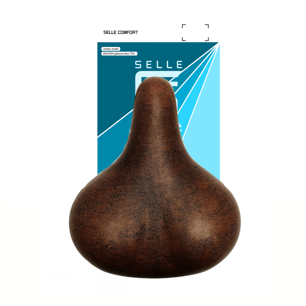 Selle Comfort Zadel, Retro medium bruin. Vacuum gesealed met hangveren, zonder strop (hangverpakking)