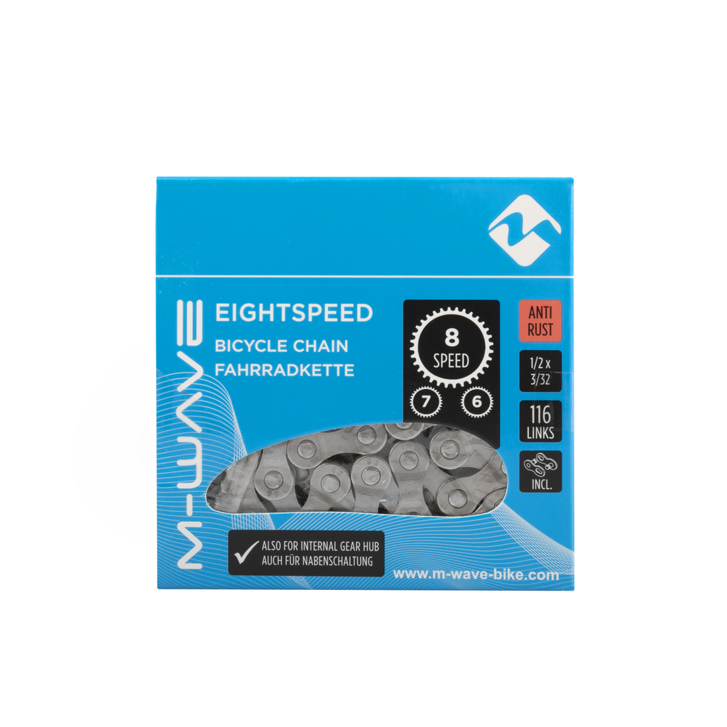 M-Wave ketting 6/7/8-speed, 1/2x3/32 116L zilver anti-roest (hangverpakking)