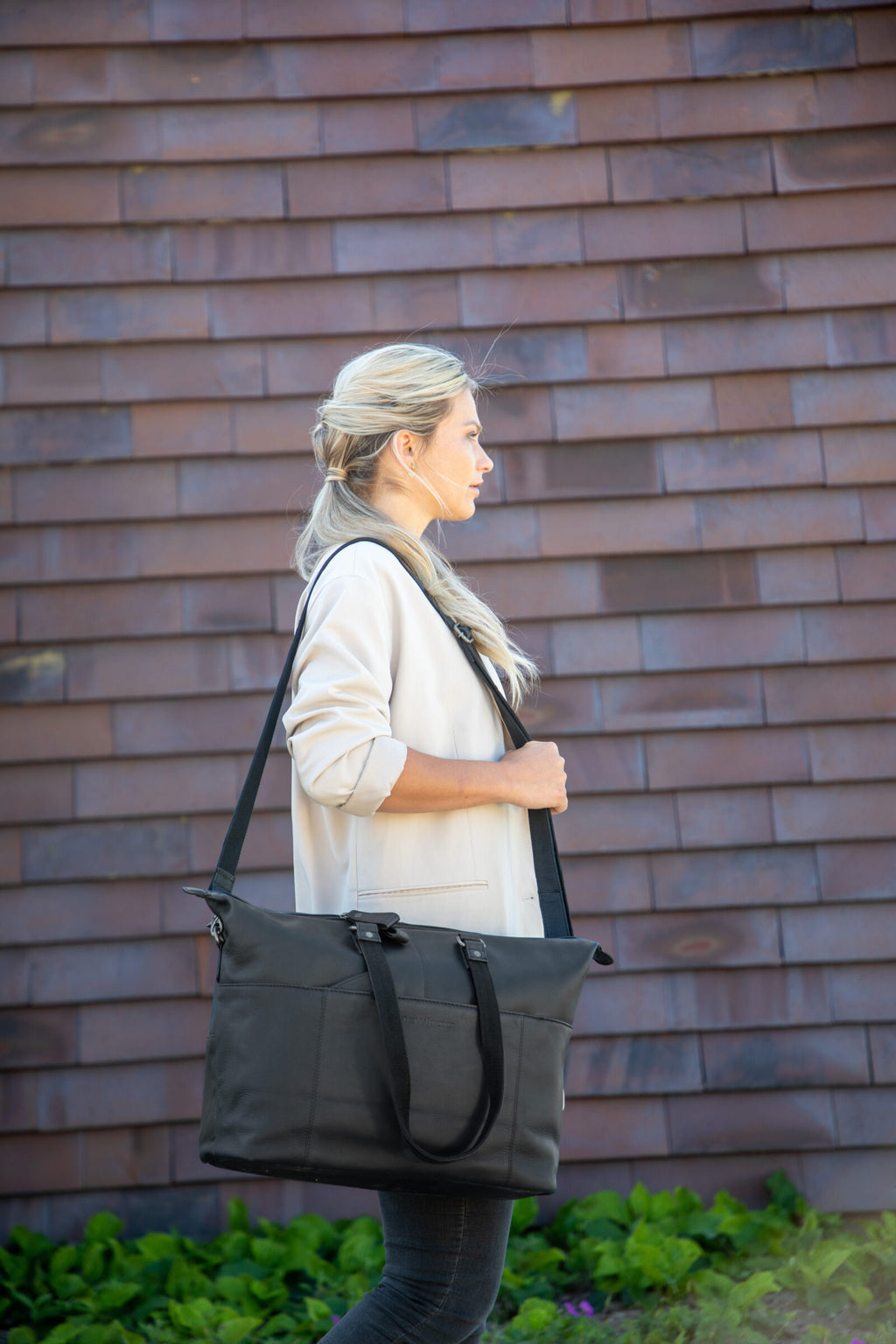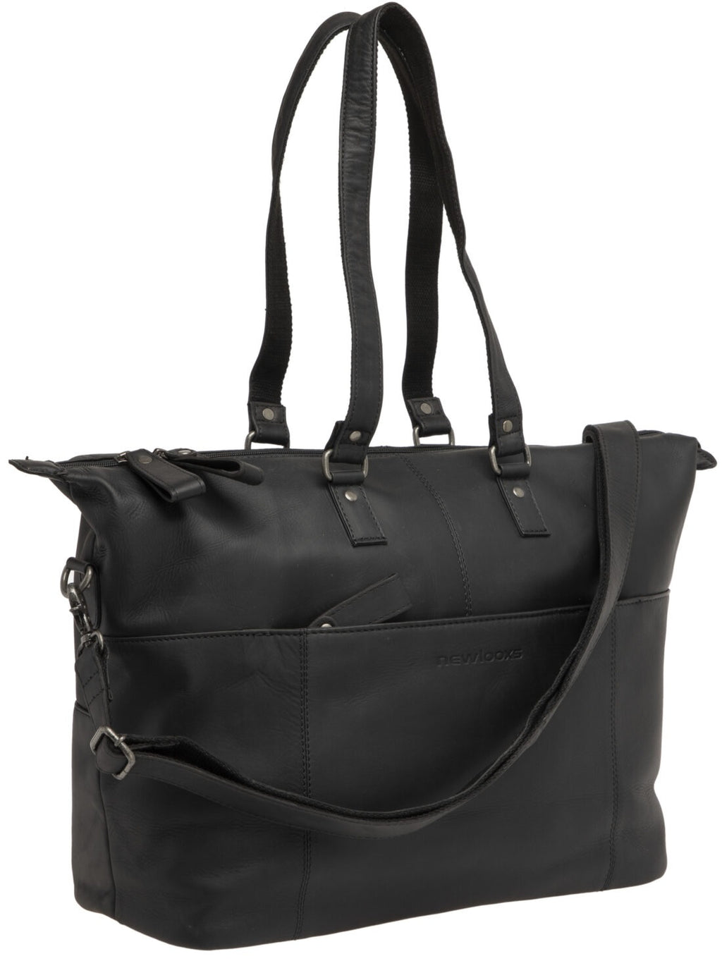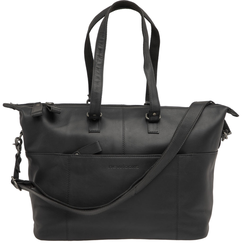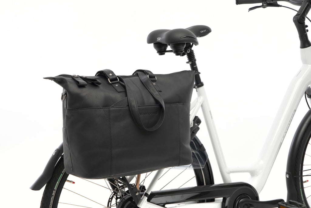 Fietstas New Looxs Verla 21 liter 34 x 18 x 44cm - gemaakt van luxe leer - zwart