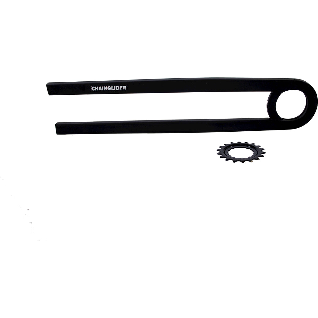 Hebie voorstuk Chainglider 18t Bosch 2. Generation zwart, incl tandwiel, benodig achterstuk is artikel HCG350RBE1 afstand gemeten hart op hart trapas en achteras is 435-486mm