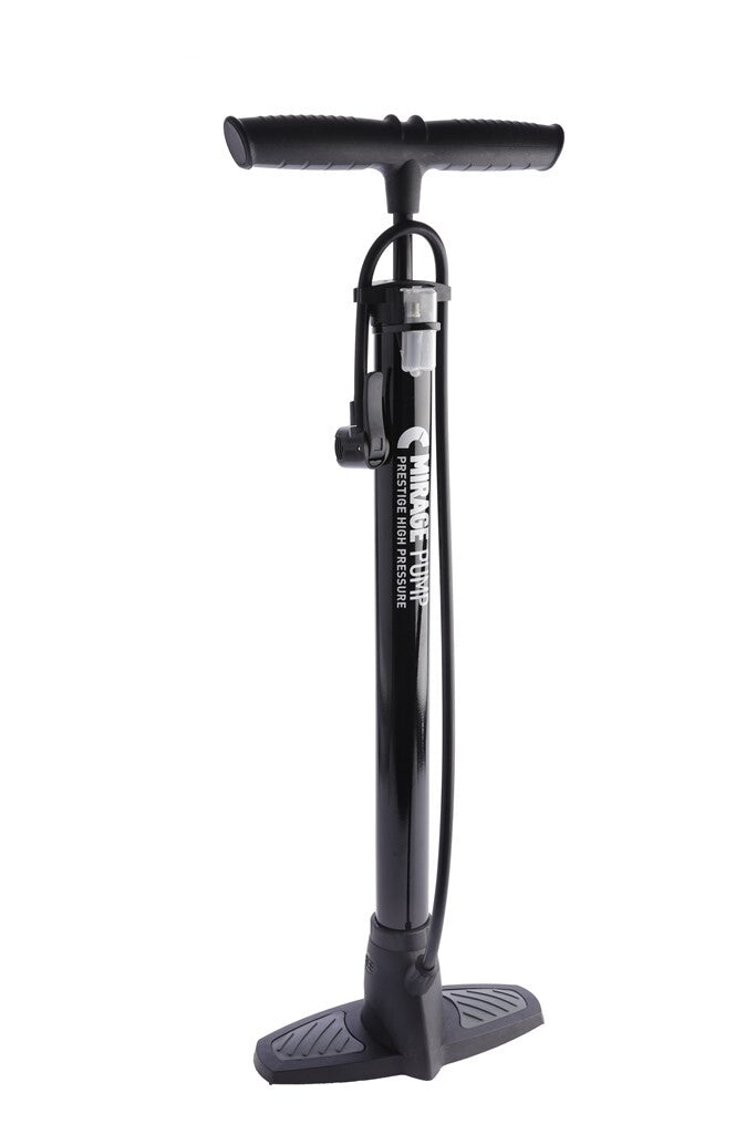 Deze Mirage voetpomp oftewel fietspomp is een degelijke en duurzame fietspomp welke geschikt is voor de meest voorkomende ventielen. De dualhead pompkop van deze fietspomp past op het normale Hollandse ventiel en de andere mogelijkheid is de aansluiting voor het autoventiel. Aan de fietspomp zit op een handige manier een doosje met de eventueel nodige adapters, zodat die altijd bij de hand zijn. De ergonomische handgreep van deze fietspomp ligt prettig in de hand. De drukmeter van deze fietspomp is wat hoger geplaatst, zodat deze makkelijker uitleesbaar is.