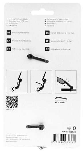 Ervaar veiligheid en comfort tijdens het fietsen met de Simson Spiegel Essential. Deze verstelbare spiegel van hoogwaardig veiligheidsglas biedt een helder en scherp beeld van wat er achter je gebeurt, zodat je met vertrouwen de weg op kunt. Kenmerken: Hoogwaardig veiligheidsglas: voor een kristalhelder zicht op het verkeer achter je. Eenvoudige montage: past perfect op een stuur van 22,2 mm. Verstelbaar ontwerp: optimaliseer de hoek voor de beste zichtbaarheid. Modern en strak design: sluit naadloos aan bij de stijl van je e-bike of fiets. Geschikt voor elke omgeving: ideaal voor druk stadsverkeer en rustige buitenwegen. Met de Simson Spiegel Essential heb je altijd een goed overzicht en controle, zonder in te leveren op stijl of functionaliteit. Een onmisbare accessoire voor elke e-bike of fietsrijder die waarde hecht aan veiligheid en design.