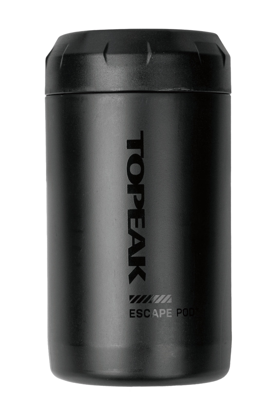 Topeak gereedschap Bidon Escape Pod + zwart. Perfect voor het opbergen van je essentiële uitrusting en gereedschap. De stevige en duurzame Escape Pod+ heeft een geluidsisolerende voering voor bescherming van de inhoud. Glijdt eenvoudig in de meeste bidonhouders, waardoor je de perfecte manier hebt om extra uitrusting mee te nemen op je volgende avontuur! TEP-P01