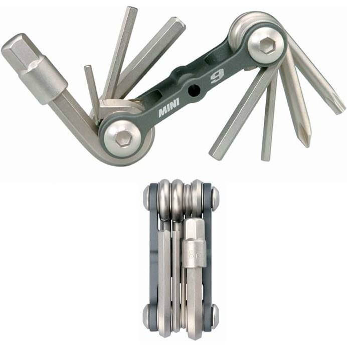 Super licht vouw gereedschapsetje uit de Mini rij. 9 functies. Electroliseerd aluminium body.Functies: 9 Inbussleutels: 2/2.5/3/4/5/6/8mm Torque sleutel: T25 Schroevendraaier: Kruiskop Gereedschap: Gehard staal Body: Aluminium Tas: Neopren Maat (LxBxH): 6,6 x 3,1 x 2 cm Gewicht: 92 gTT2409