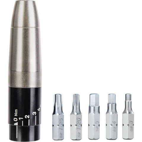Topeak momentsleutel Nano TorqBox X. Werkt met elke inbussleutel van 5mm werkt. Reeks 2-6 Nm. 3 / 4 / 5 Allen bits T20 / T25 Torx bits. 128 gram. TT2575.