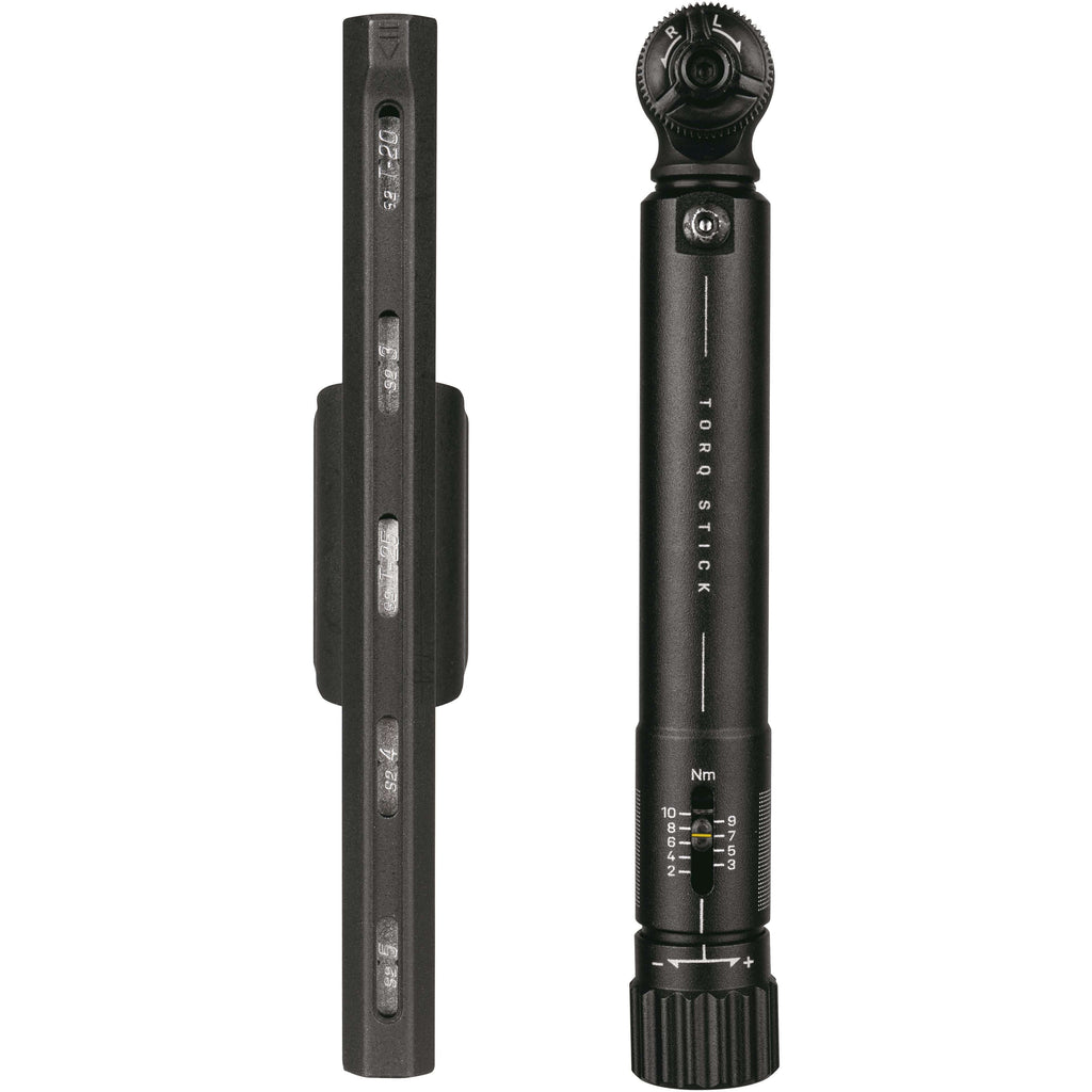 Topeak Momentsleutel Torq Stick. Een ongelofelijk compacte momentsleutel met instelbaar koppel van 2 -10 Nm. De standaard inbus-aansluiting met omkeerbaar ratelmechanisme is vooraf instelbaar op een bepaald aanhaalmoment waardoor je veilig en zonder zorgen alle bouten van je frame of onderdelen kunt vastzetten. Inclusief penhouder met zichtvensters voor het snel en eenvoudig vinden van de juiste bits. Aantal functies: 8. Gewicht: 168g. Afmeting: D2x14,6cm. Materiaal: Aluminium. Tools: 3-4-5 inbus bits, T20-T25 Torx bits. Kleur: Zwart. TT2587