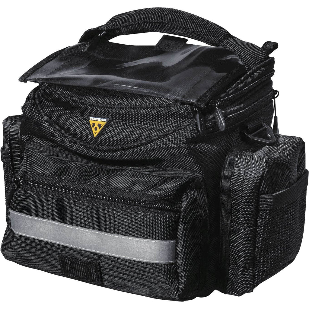 Topeak stuurtas Tour Guide. Een veelzijdige, medium capaciteit stuurtas met QuickClick aansltuiting en schouderband om eenvoudig de tas met je mee te nemen.. Binnenzijde is volledig gevoerd, een gesplitst opbergvak met rits aan de voorzijde, en twee zakjes aan de zijkanten zodat je spullen geordend kunt opbergen. Perfect voor langere tochten, dagje uit of voor naar het werk fietsen. Regendekje is inclucief. Deze versie is speciaal ontworpen voor E-bikes met een computer voorop in het midden van het stuur. Doordat de tas iets verder naar voren bevestigd is zit deze niet in de weg voor de computer. incusief Fixer 8e, Inhoud 5 liter.